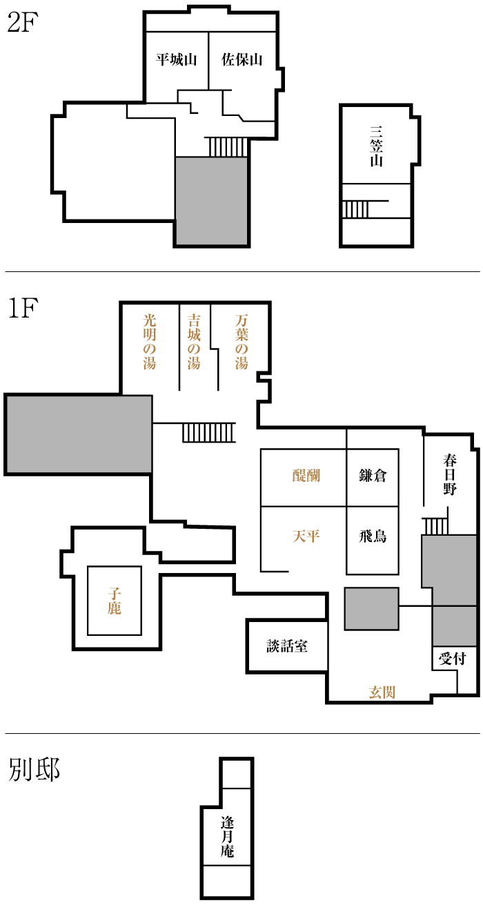 館内MAPでございます。茶色文字の部分を「クリック」いただくと、詳細画像が御覧いただけます。